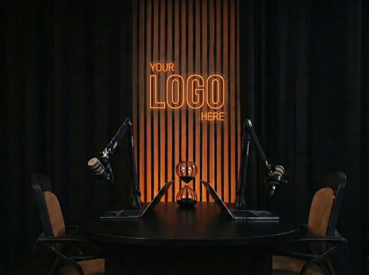 A dedicated podcast recording studio designed for natural conversation and long-form discussions.